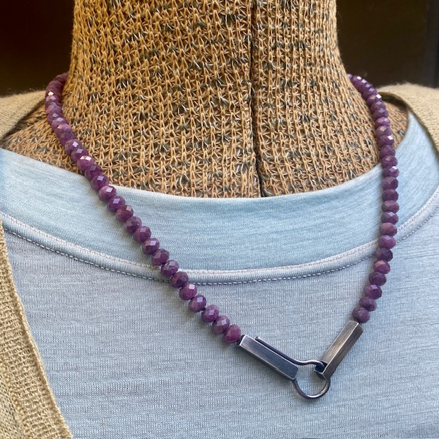 The necklace is strung on black silk cord
